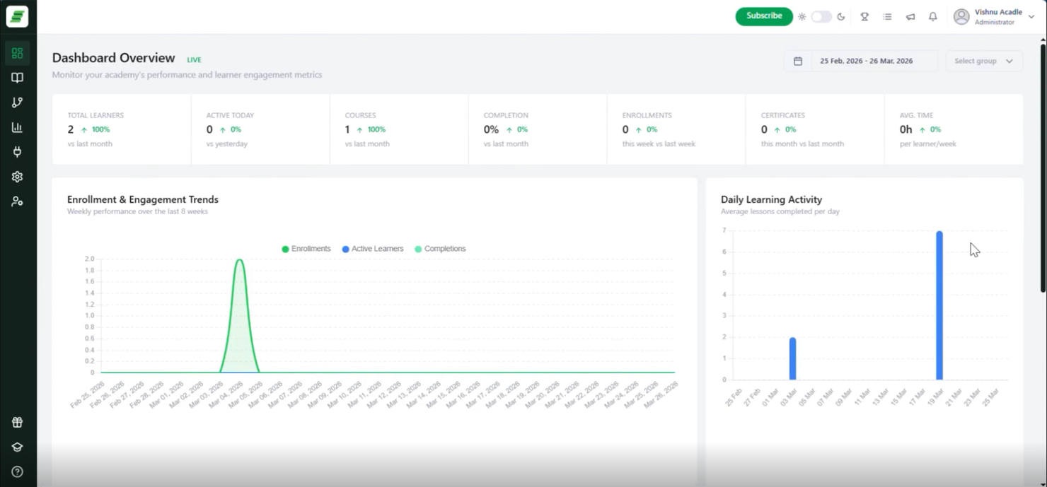 Track Engagement – Use Acadle’s insights to monitor which courses generate the most interest.